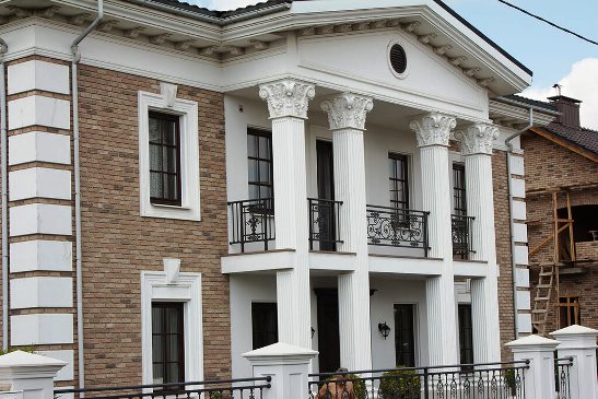 Благодаря современным элементам для фасада из пенополистирола у каждого желающего есть уникальная возможность сделать экстерьер здания в любом стиле: греческом, барокко, древнеримском и т.д.